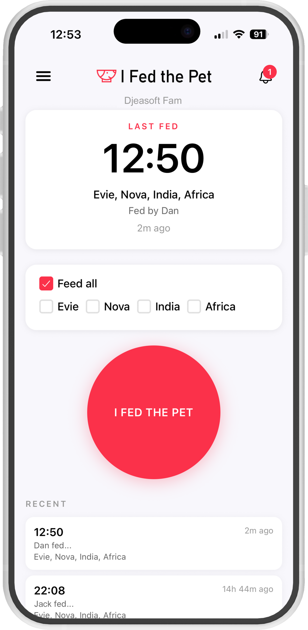 Get instant notifications when someone feeds a pet, preventing double feeding