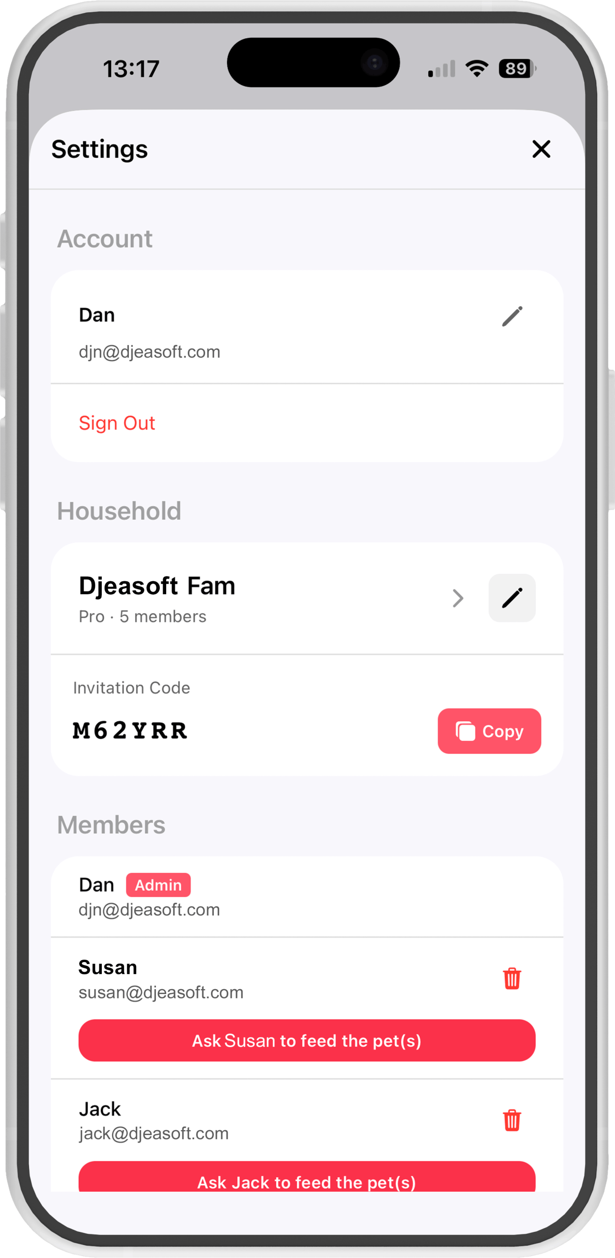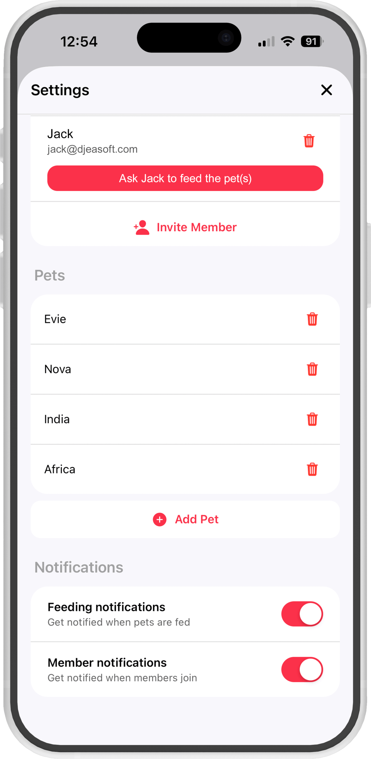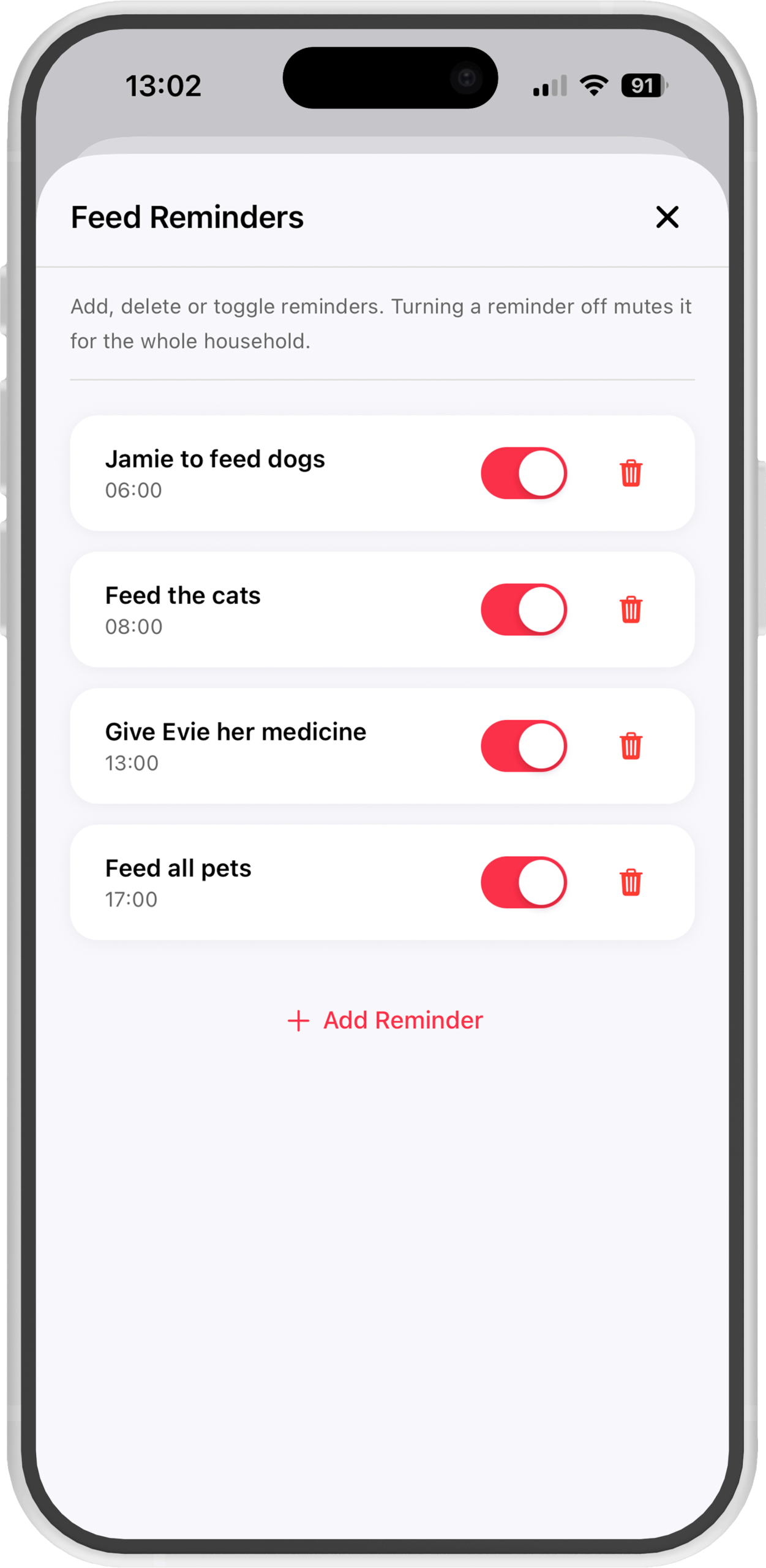 Ask a household member to feed the pets from the app